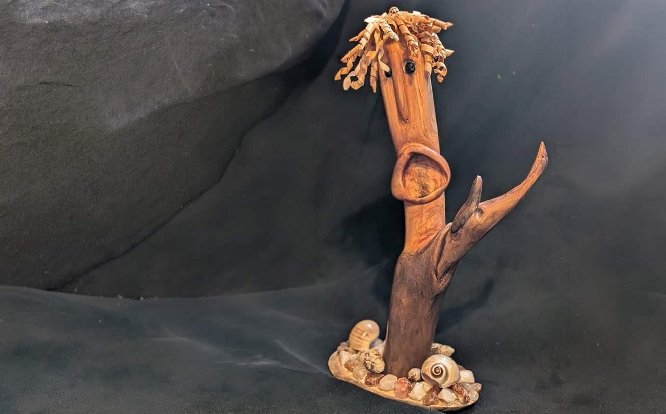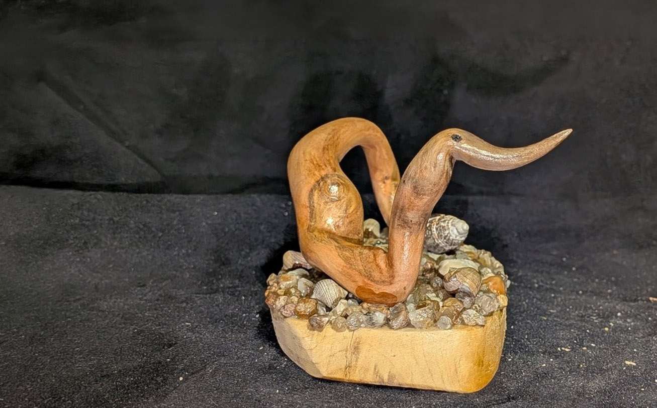 Through his work, Kenneth transforms weathered driftwood into living forms — giving new life to pieces shaped by the tides.