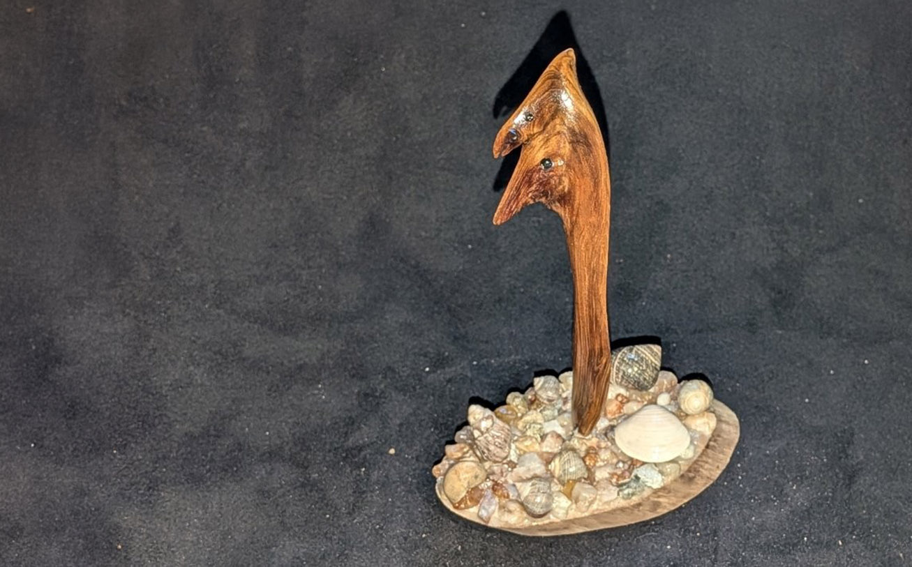 Today, his carvings have evolved into a growing collection of Driftwood Creatures — a world of imagined species inspired by the ocean, shoreline, forests, and ancient times. Each sculpture carries its own presence and personality, shaped not only by the artist’s hand but by the natural grain, texture, and history of the wood itself.